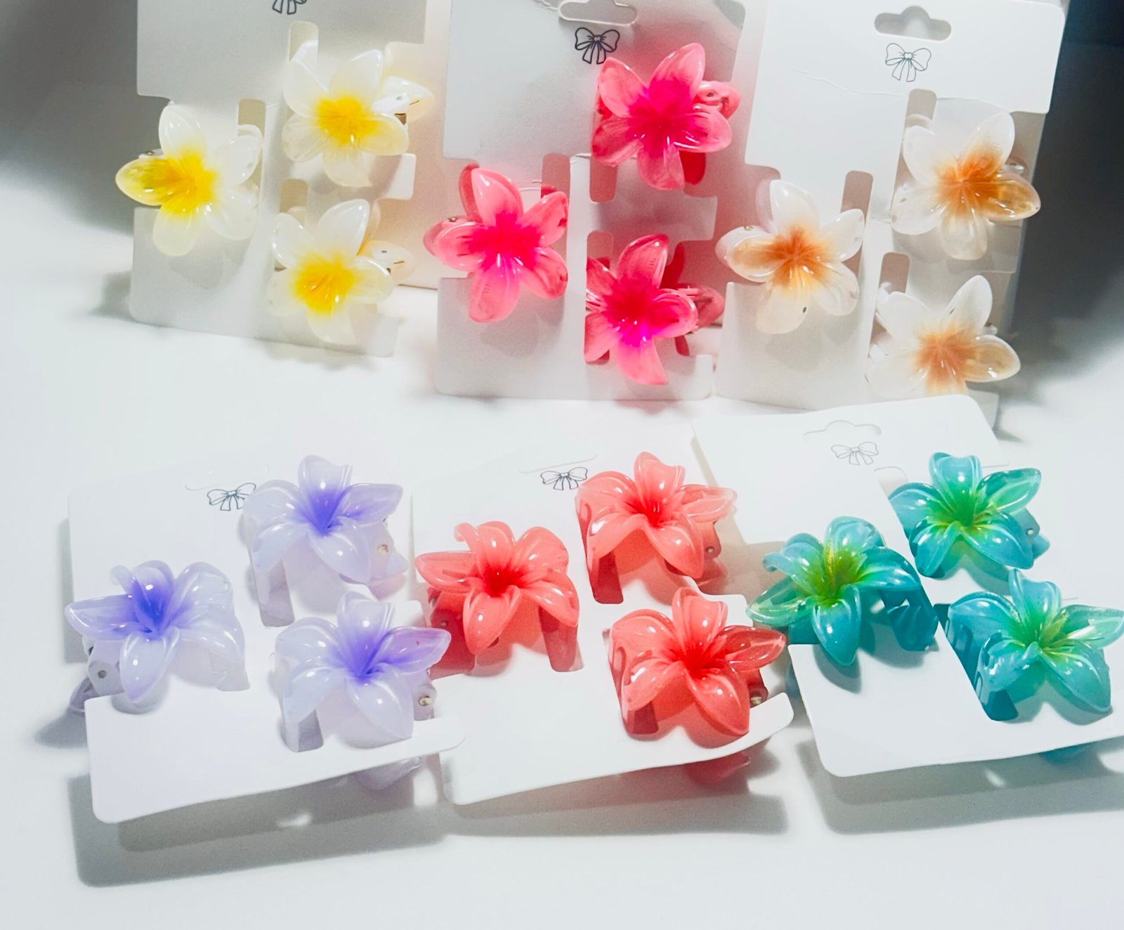 | Cor | Branca e amarela, Rosa e pink, Branca e âmbar, Lilás e roxa, Coral e laranja, Azul e verde |